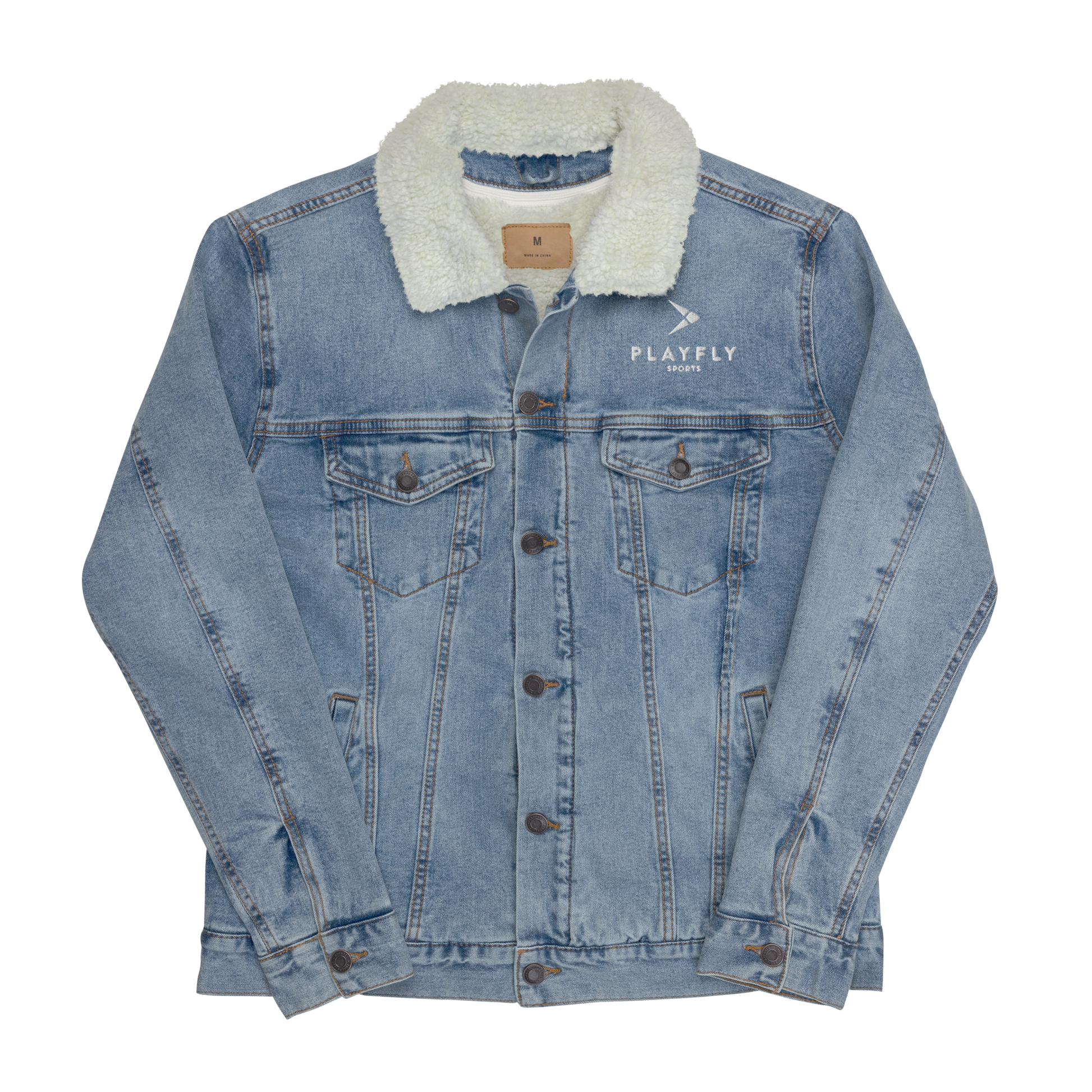 Playfly white - Unisex denim sherpa jacket